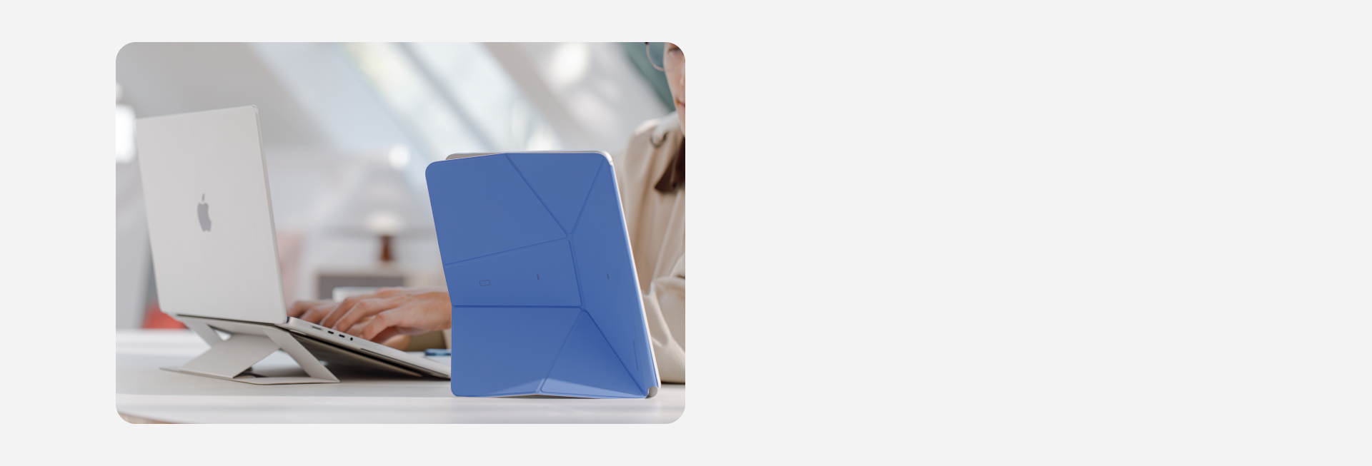 Bring your Mac into the realm of peak productivity. Elevate two devices to eye level and turn the entire world into your office.