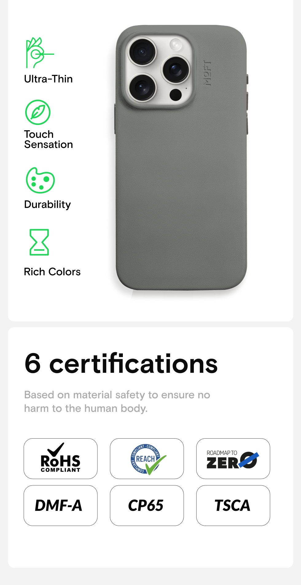 วัสดุ: MOVAS™ Vegan Leather, Magnets, Metal sheets, Fiber glass, PC
